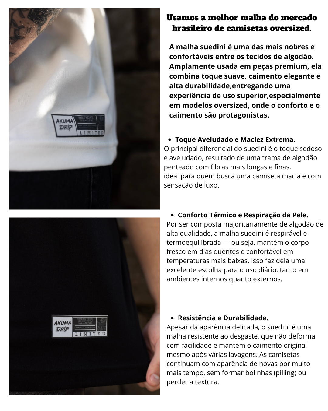Com o corte oversized, a camiseta apresenta um caimento perfeito, unindo conforto e um visual moderno, ideal para quem deseja expressar sua paixão pelo universo otaku com autenticidade. Cada detalhe foi pensado para entregar o que existe de melhor no mercado, focando em qualidade de altíssimo padrão e uma experiência exclusiva para você, fã de anime como nós.